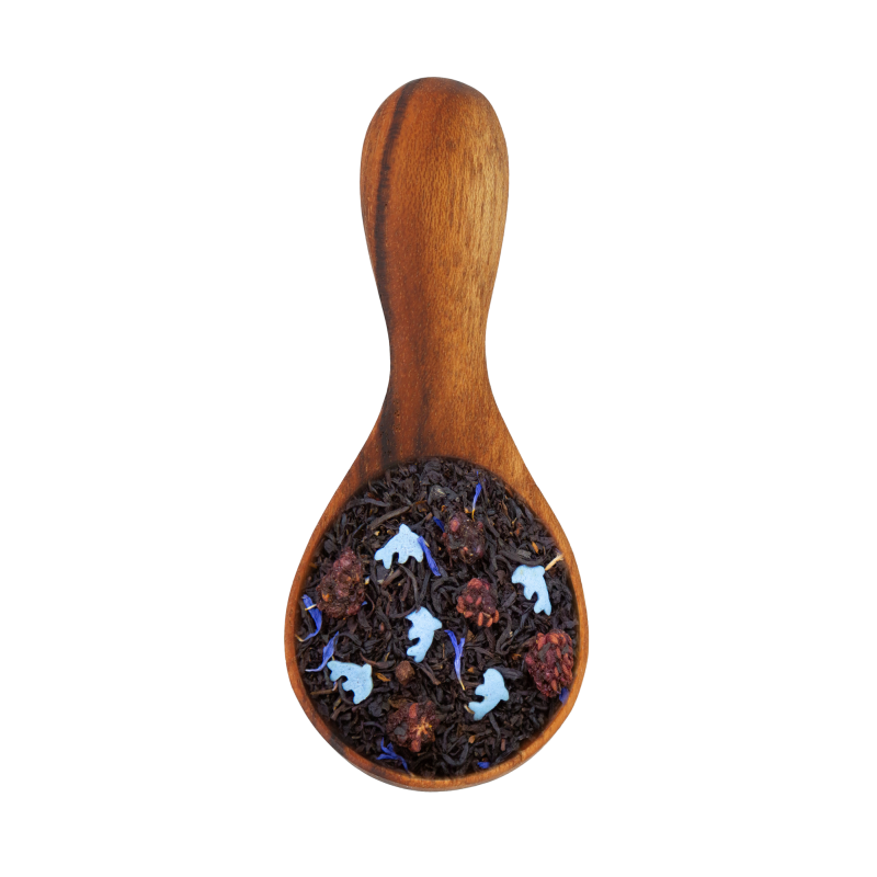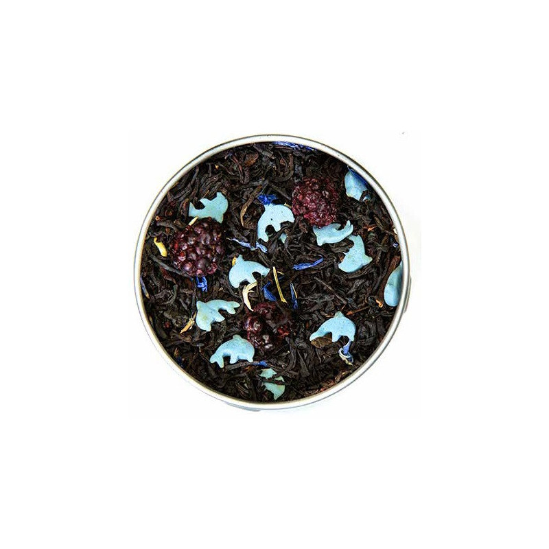 Thé noir de Chine non fumé parfumé aux fruits noirs et aux fruits rouges et agrémenté de petit dauphins en sucre.
