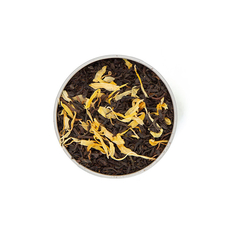Thé noir de Chine non fumé aromatisé aux fruits de la Passion et à la Vanille et agrémenté de pétales d'hélianthe.