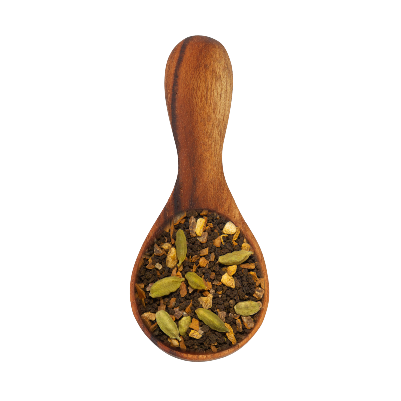 Thé noir des Indes de la région d'Assam, type CTC parfumé aux épices tchaï : clou de girofle, cardamone, gingembre...