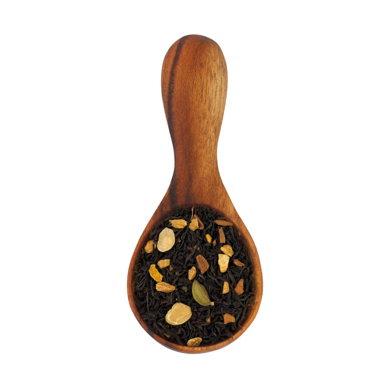Mélange de thés noirs de Chine non fumé aux parfums gourmands d'amande, caramel, vanille, gingembre, orange et épices.