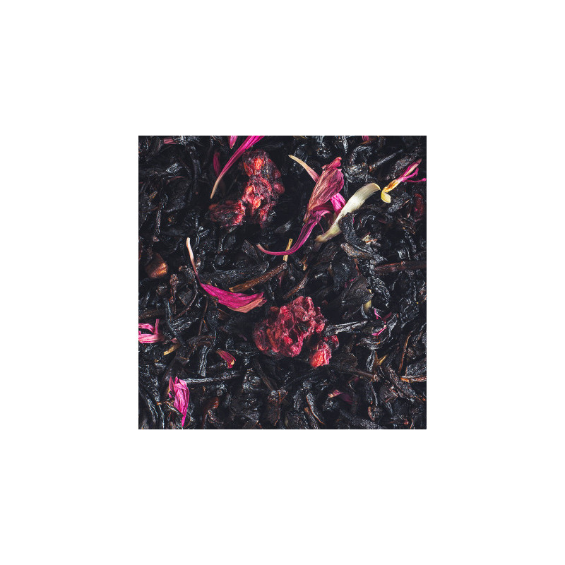 Mélange de thés noirs de Chine non fumés aromatisé à la cerise et au chocolat agrémenté de pétales de fleurs.