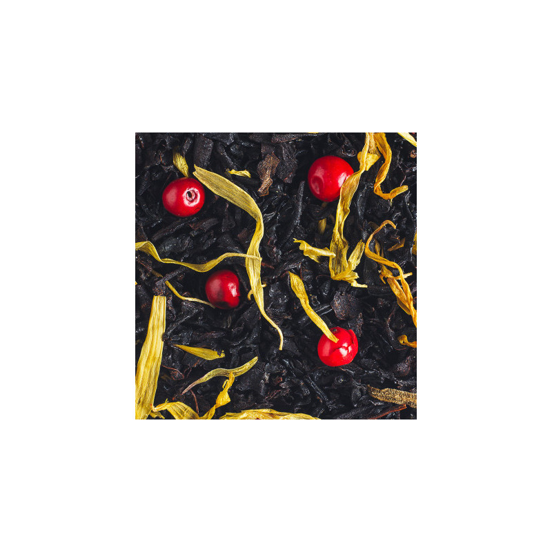 Mélange de thés noirs de Chine non fumés aromatisé au caramel, vanille, mandarine et agrémenté de baies rouges et pétales de fleurs.