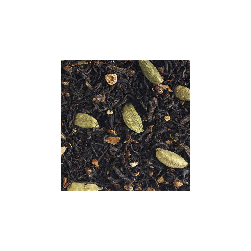Thés noirs de Chine agrémentés de clou de girofle, gousse de cardamone, morceaux de gingembre, cannelle et écorces d'orange.