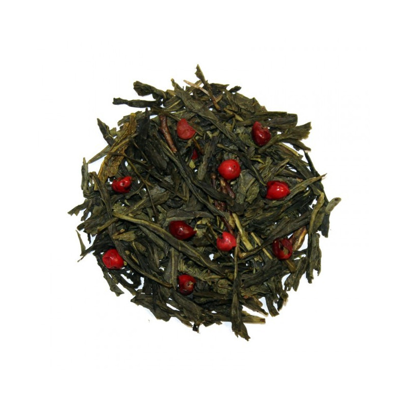 Mélange de thés vert de Chine aromatisé à la fraise et relevé d'une note de wasabi. Une tasse fruité et gourmande.