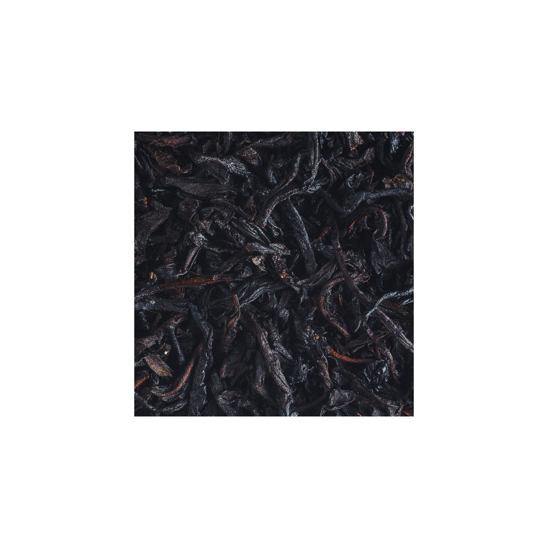 Thé de Ceylan OP aromatisé à la vanille et parsemé de morceaux de gousses de vanille.